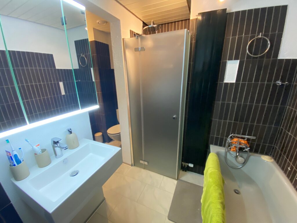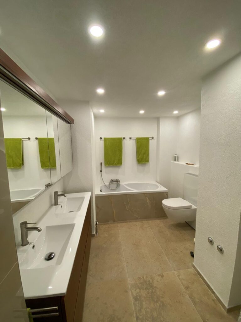 In einem Wohnobjekt in Brig wurden das große Badezimmer sowie das separate Tages-WC vollständig renoviert. Dabei wurden sämtliche sanitären Installationen, Leitungen, Wand- und Bodenbeläge sowie Deckenverkleidungen fachgerecht erneuert und modernisiert. Das Ziel war eine komplette funktionale und optische Erneuerung beider Räume.